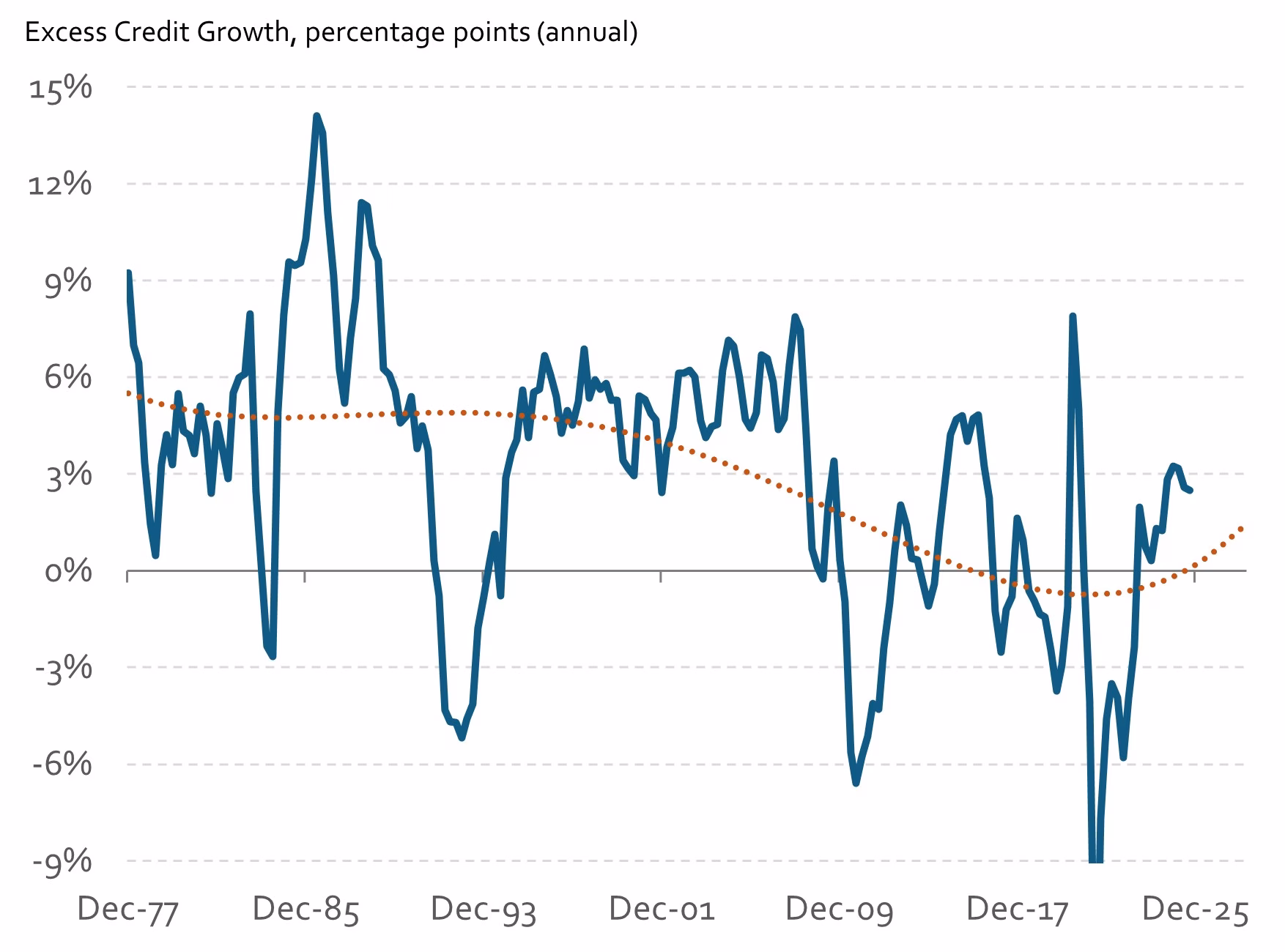 The strong scenario has a much bigger lift in demand in FY26 than the central case. This does not translate into higher real economic output; it largely shows up as higher inflation given capacity constraints, particularly in the labour market. In this scenario wage costs rise strongly over the next two years, particularly for skills in high demand. The RBA responds to rising demand and inflation in 2026 with a series of rate hikes that fails to slow the economy in a meaningful way; inflation persists and ultimately the RBA cash rate rises to a point that triggers financial distress and an economic recession. A key factor to watch in this scenario is credit growth, property prices and wealth effects. Our measure of ‘excess credit growth’, which is essentially the rate of bank credit growth over and above nominal economic growth, provides an indication of the extent of asset price inflation, wealth effects and the financial vulnerability of the economy to higher interest rates. We anticipated a strong and sustained recovery from the projected recession in this scenario. A recovery that is sustained well into the 2030s.